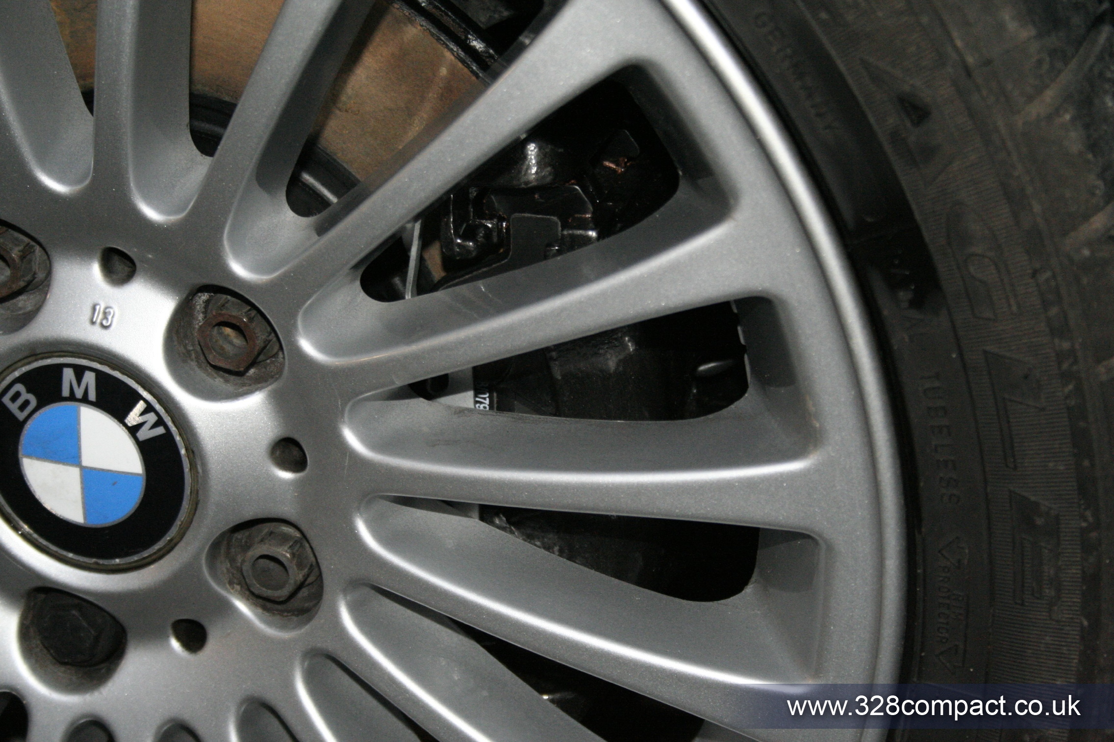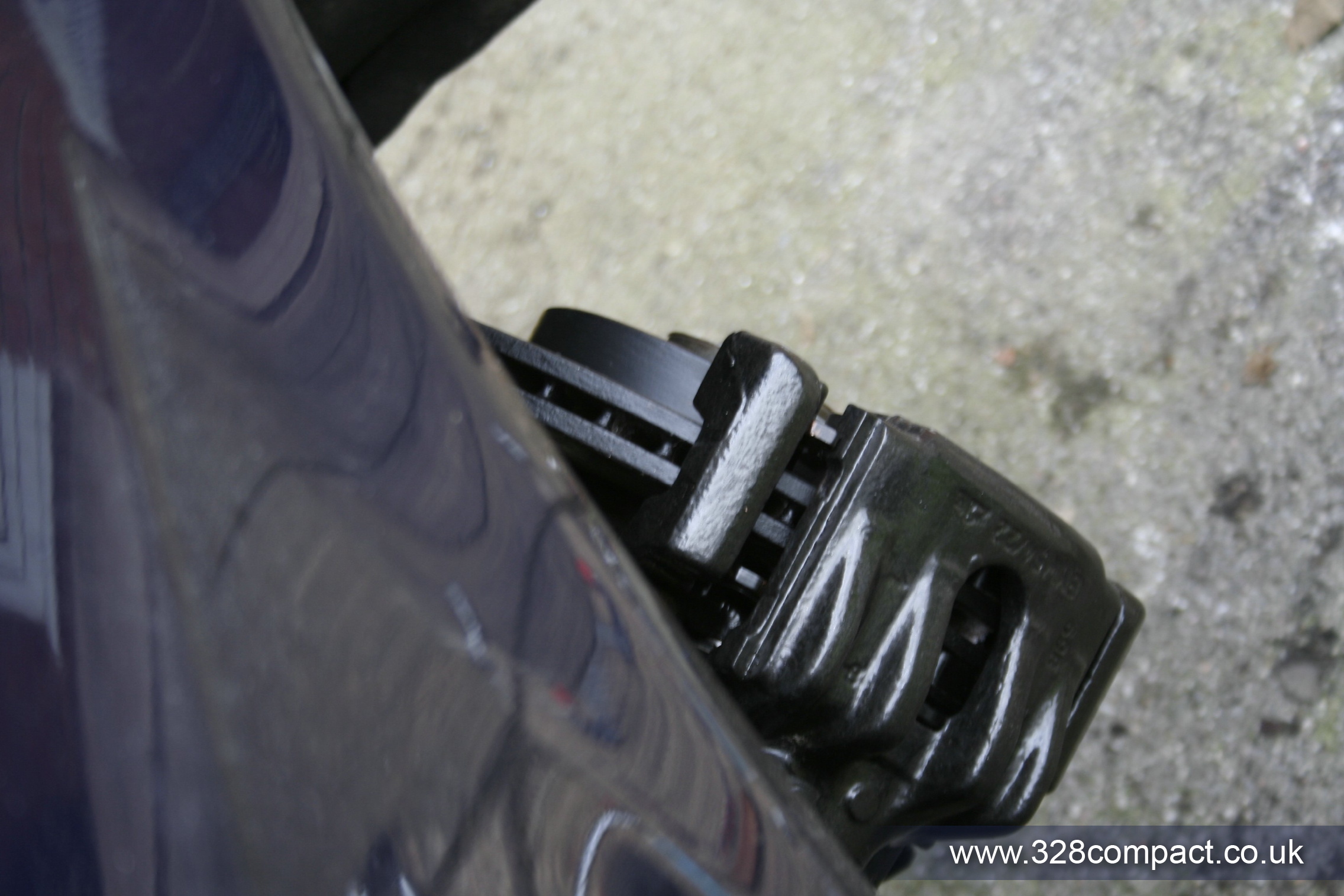 Below shows the view is through the wheels, the new callipers are closer to the wheels than the original and they look shiny. Not much sign of all the work that went into resorting them.