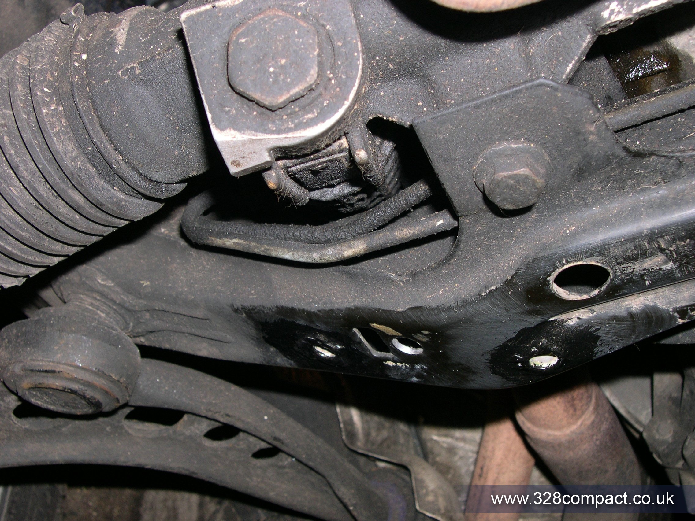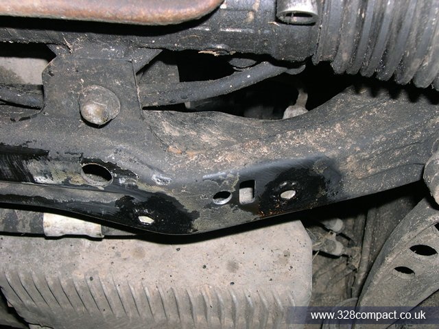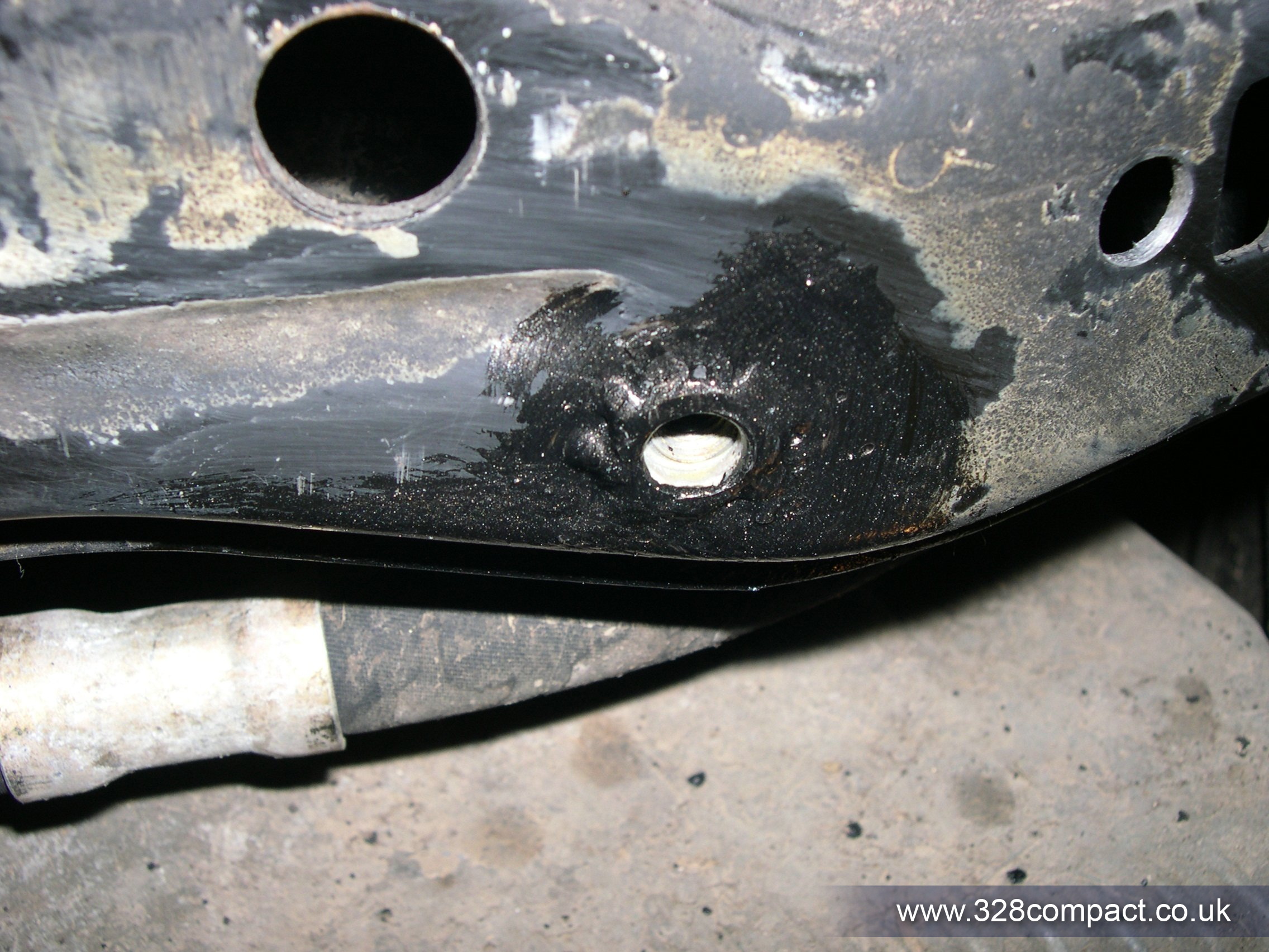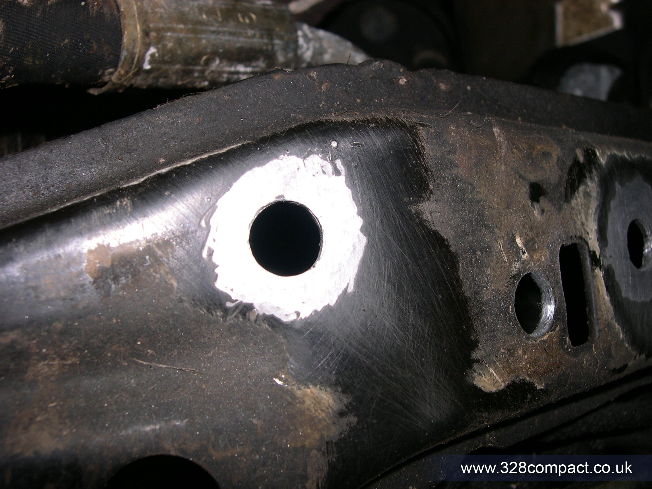 Step 1, drill out the subrame holes to 11mm. Next the surrounding area around the holes was taken back to the metal ready for welding. Then the riv nuts hammered in, followed by welding them in to place. The results aren’t too pretty but the connection is strong; as before mentioned I have had very little experience with welding. Once I had tuned in the right settings on the welder it wasn’t too bad.