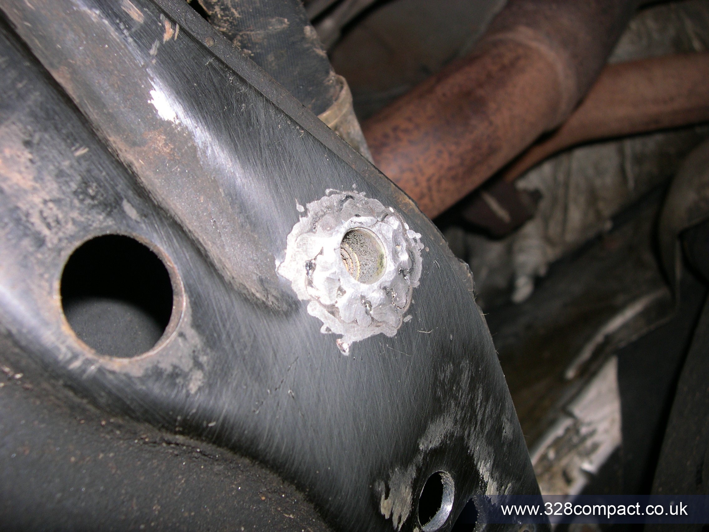 Well it didn’t quite work out like that. Before going at my subframe I thought I’d do a test run on some scrap metal. After making the hole exactly the right size and hammer in the riv nut it was not possible to compress the nut into place. The riv nut would just spin and not lock in place.