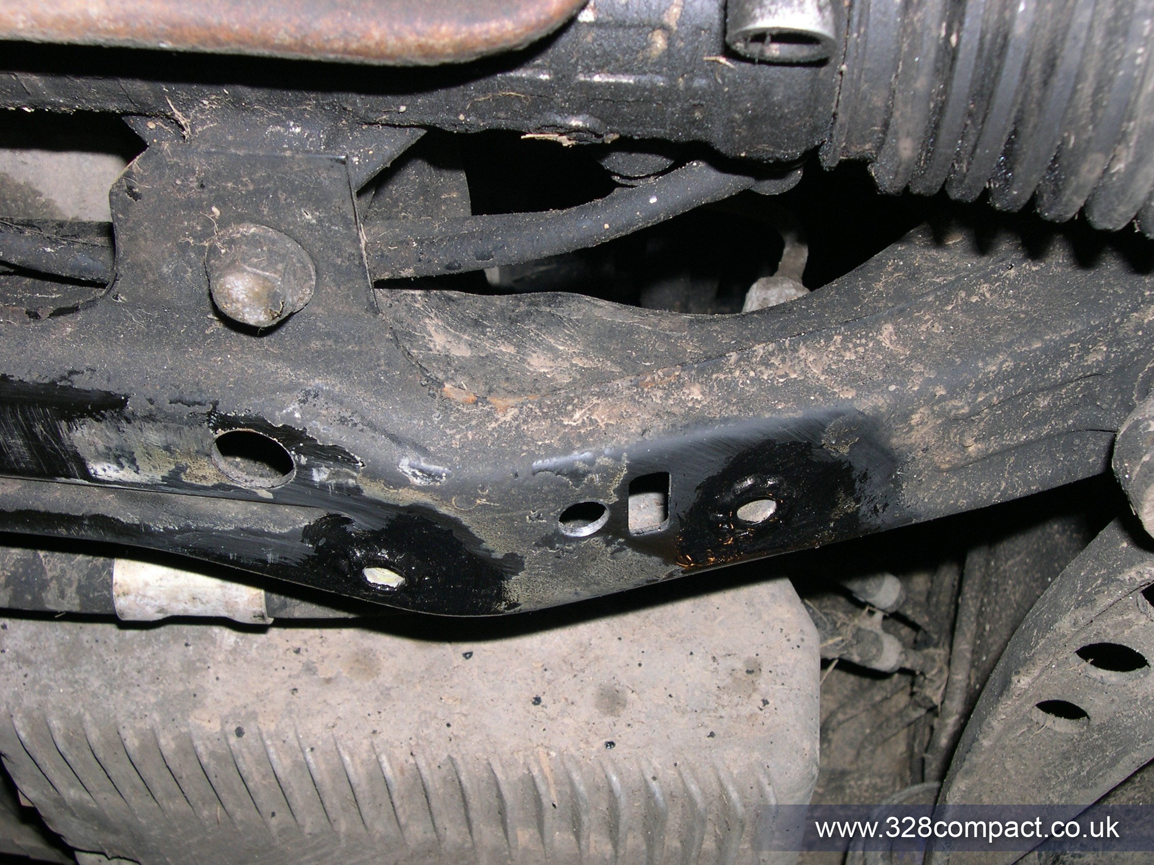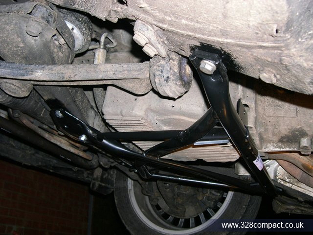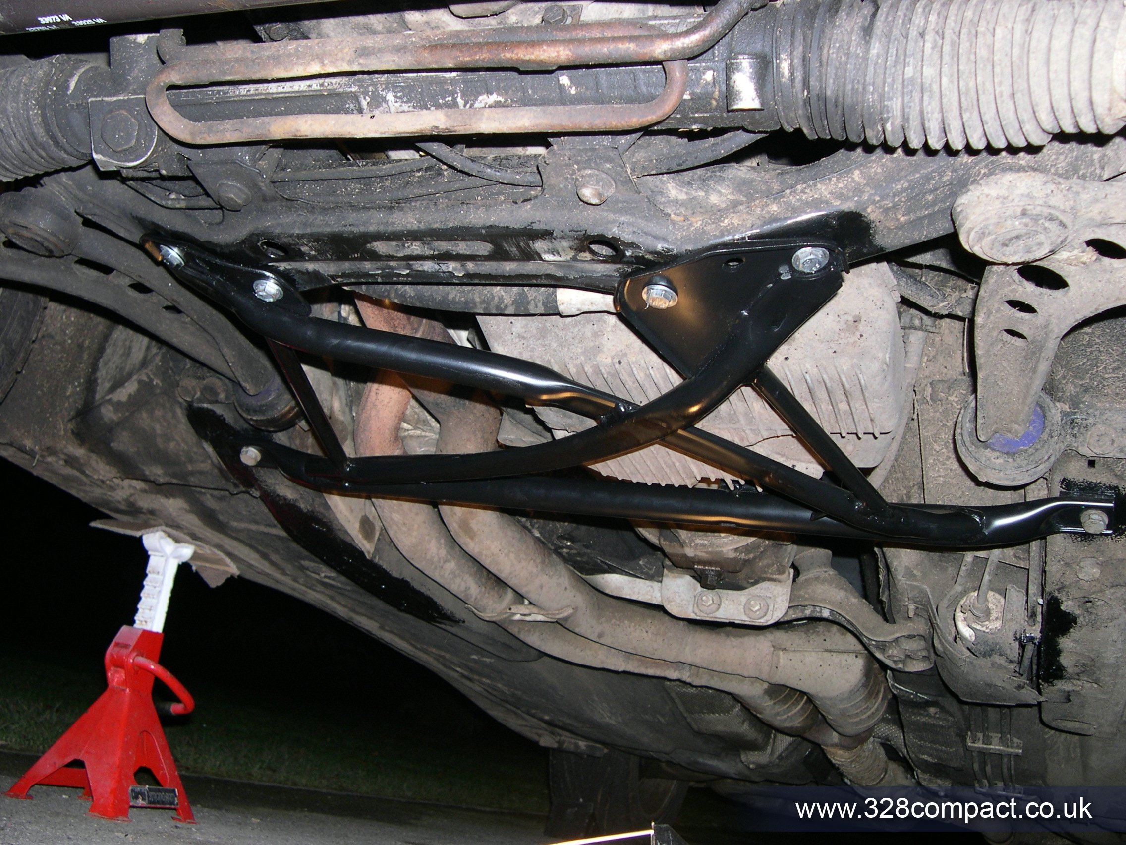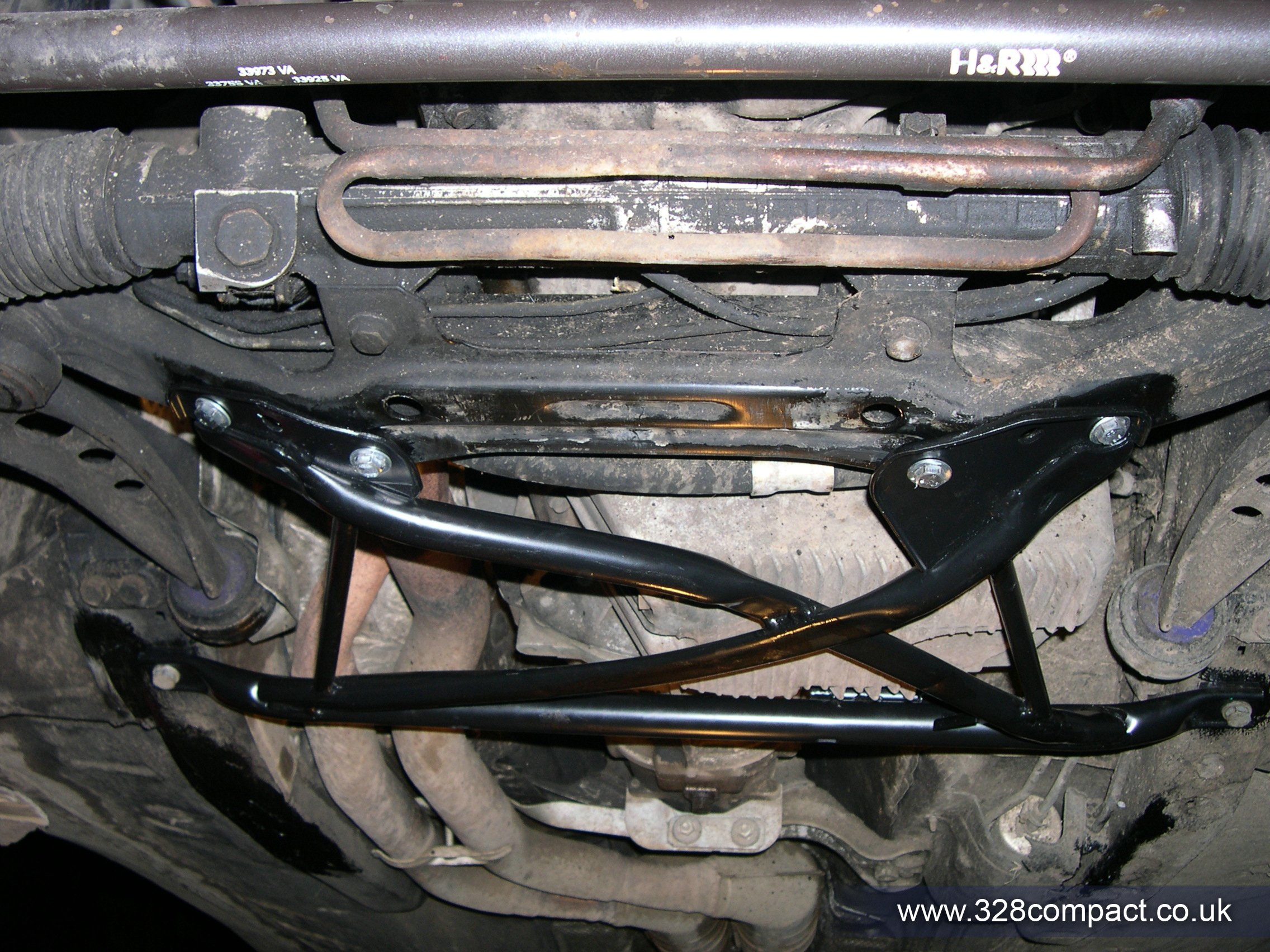 After grinding down the welds the bare metal was given a coat of paint for protection and the x brace bolted up.